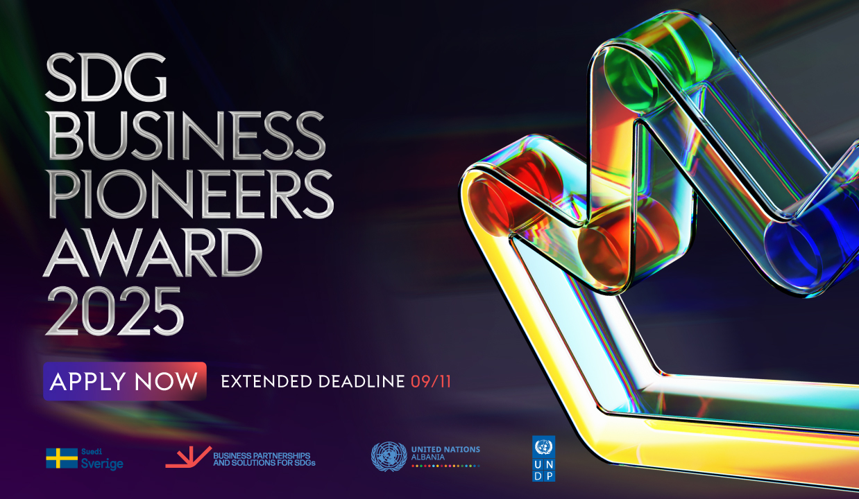 The SDG Business Pioneers Award acknowledges and celebrate businesses that show outstanding dedication to sustainability and actively contribute to the achievement of the Sustainable Development Goals (SDGs). We are seeking Albania’s leaders and companies that inspire positive change through their operations, products, services, and overall business practices.